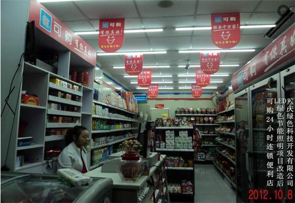 公司在可購24小時(shí)連鎖便利店實(shí)施的LED綠色照明節(jié)能改造實(shí)圖